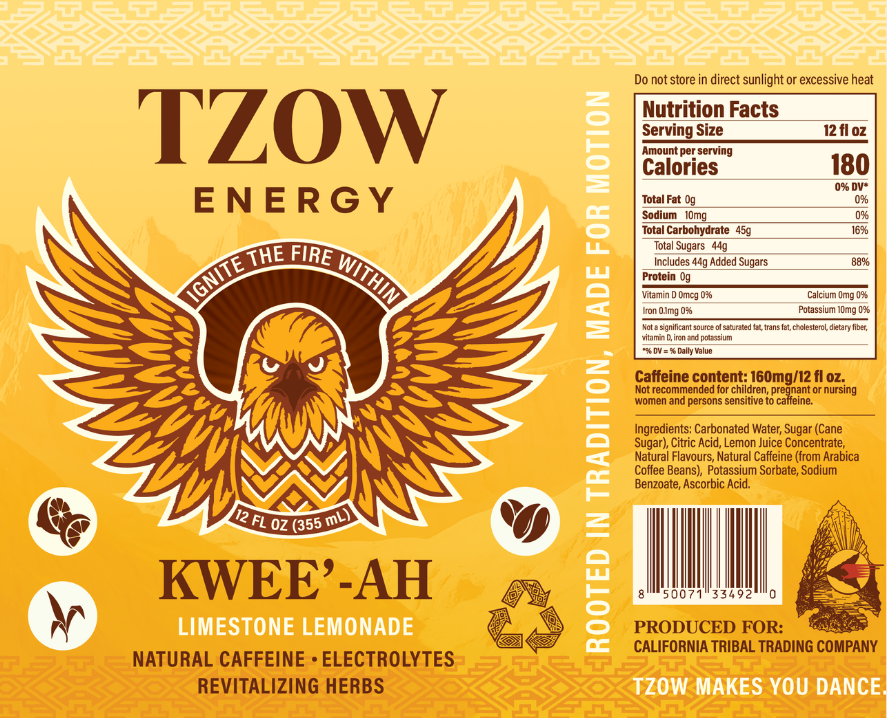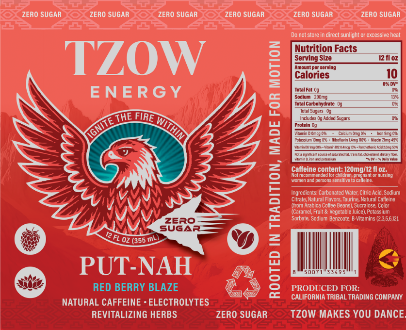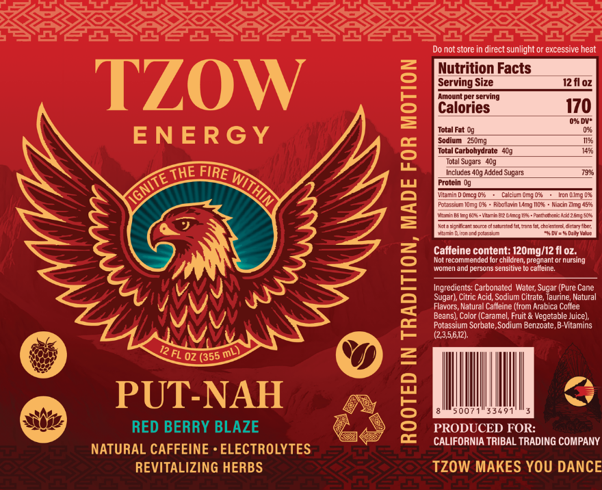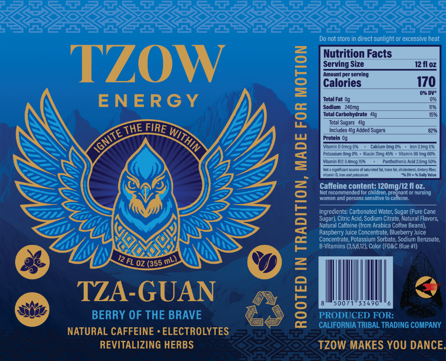 TZOW Energy was created with a powerful mission: to energize and empower Native communities, beginning with the Mono people of the Big Sandy Rancheria reservation in California. As a new brand, its primary goal is to create a product that not only fuels the body, but uplifts tribal identity and pride, starting with the Mono community by honoring their language through unique flavor names and cultural references.