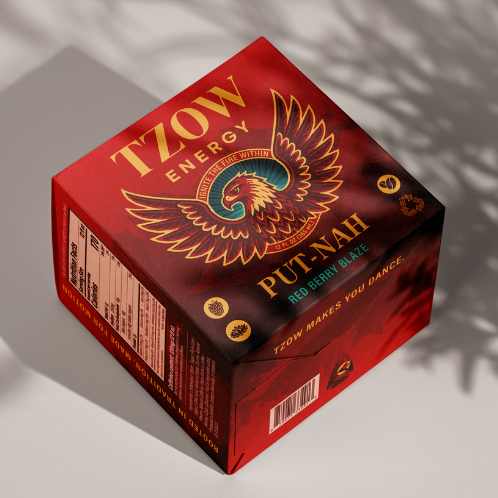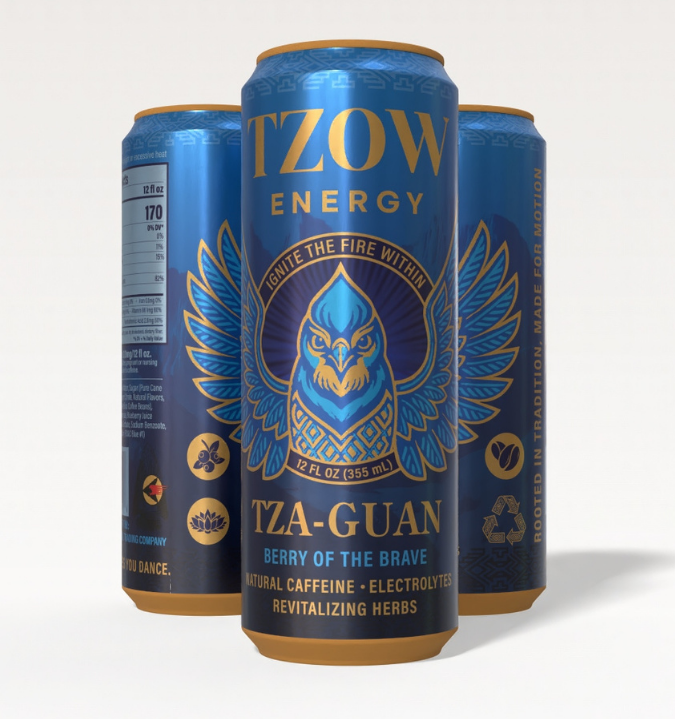 The name TZOW was chosen for its roots in the Mono Indian language, where it roughly means “good” — a simple but powerful word that reflects the brand’s intention to uplift and energize in a positive way. Beyond its meaning, the name stood out for being short, bold, and easy to say, with a distinctive look and sound. The strong “TZ” combination gives it a striking visual identity that feels modern and memorable, perfectly suited for a brand born from tradition but built for now.